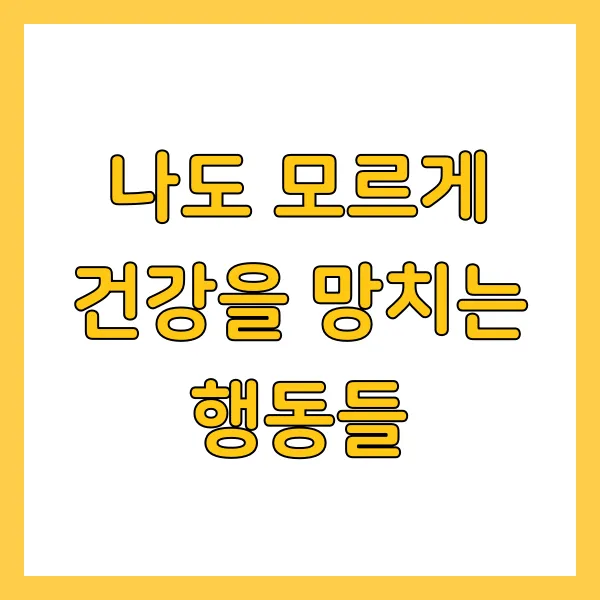 우리가 일상 속에서 무심코 행하는 작은 행동들이 건강에 큰 영향을 줄 수 있다는 사실 , 새롭게 다가오죠? 잘못된 식습관 , 과도한 스트레스, 수면 부족과 운동 부족 , 이 모든 것들이 우리의 건강에 영향을 미쳐요. 하지만, 지금부터라도 스스로의 건강을 위해 조금씩 변화를 시도해보면 어떨까요? 한 걸음 한 걸음씩 바꾸어 가다 보면, 마음도 몸도 점점 더 건강해질 거예요. 여러분의 건강한 일상 을 응원할게요! 함께 노력해봐요.