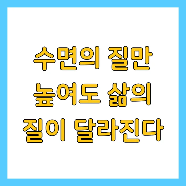 이처럼 수면의 질을 개선하는 방법은 어렵지 않아요. 작은 변화지만, 그 효과는 굉장히 크답니다! 수면의 질을 높여 더욱 건강한 삶을 만들어 가세요. :)