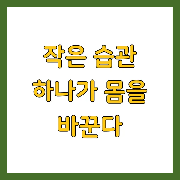 일상 속 작은 습관이 우리 몸과 마음에 얼마나 큰 변화를 가져다줄 수 있는지 이제 알게 되었어요. 작아 보이지만 매일 반복되는 행동 이 건강에 긍정적인 영향을 미치고, 지속적으로 실천할 수 있는 토대를 만들어 주거든요. 변화는 거창한 것이 아니에요. 오늘부터 조금씩, 꾸준히 새로운 습관을 쌓아가며 건강한 자신을 만들어봐요. 작은 습관이 커다란 성과로 이어지는 걸 경험하는 순간, 그 기쁨은 이루 말할 수 없을 거예요. 함께 조금씩 변화를 시작해보는 건 어떨까요? 여러분의 건강 여정에 따뜻한 응원 을 보냅니다.