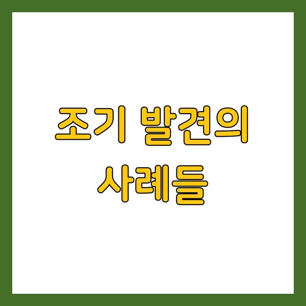 이러한 예시들은 정기 검진이 얼마나 중요한지를 다시금 깨닫게 해주죠. 조기 발견 덕분에, 많은 사람들이 건강을 지키고 더 나은 삶을 살 수 있었어요. 정기적인 건강 검진은 단순히 질병을 발견하는 것 이상의 의미를 가지고 있어요. 이는 건강한 삶을 지속할 수 있는 힘을 주는 셈이죠! 검진을 통해 발견된 조기 사례들은 우리에게 정기 검진의 중요성과 필요성을 일깨워 주고 있답니다.