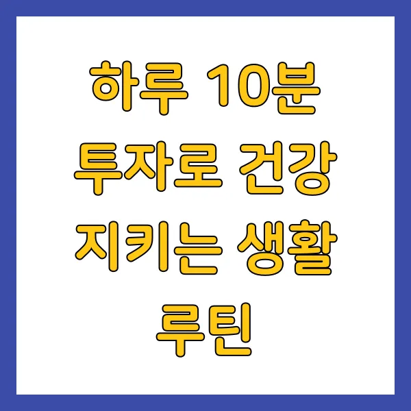 건강을 지키기 위해 하루 10분만 투자하면 많은 긍정적인 변화를 느낄 수 있어요. 아침에는 몸을 깨우는 스트레칭으로 상쾌한 시작 을, 점심 후에는 짬짬이 운동으로 활력을 , 저녁에는 릴렉스로 여유 를 찾아보세요. 하루의 마무리는 자기 전에 명상으로 마음을 다스리는 것이죠. 이 작은 변화들이 쌓이고 쌓여 우리의 삶을 더욱 건강하고 활기차게 만들어줄 거예요. 매일 꾸준히 실천한다면, 스스로도 놀랄 만큼의 긍정적인 변화를 느끼게 될 거예요. 그러니 오늘부터 시작해 보는 건 어떨까요?